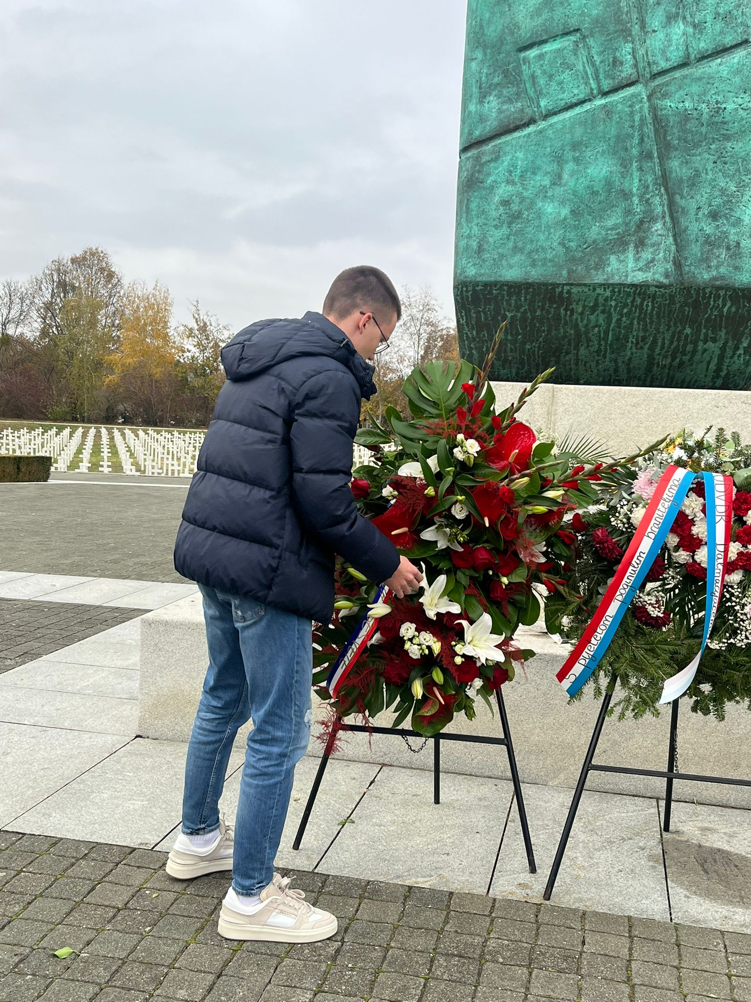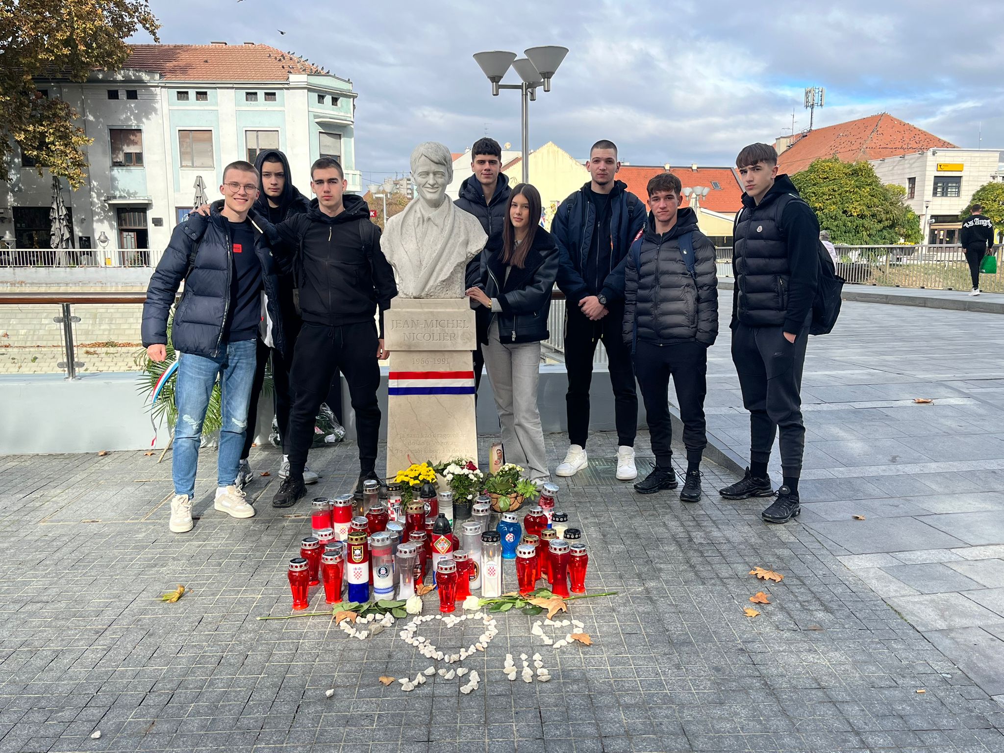 Na Memorijalnom groblju žrtava Domovinskog rata, kod središnjeg križa položili smo vijenac i zapalili svijeće odajući počast svim poginulima. Vijenac i svijeće položili smo i na grobJean-Michela Nicoliera, francuskog dragovoljca koji je dao život za Hrvatsku. Njegova životna priča opisana u romanu poznate hrvatske književnice Nevenke Nekić Jan ili miris smrti, kasnije pretočena i u dokumentarni film koji govori o njegovoj sudbini. Njegove riječi Za Vukovar u dobru i zlu i njegov osmijeh sa fotografija postati će dio naših sjećanja.
