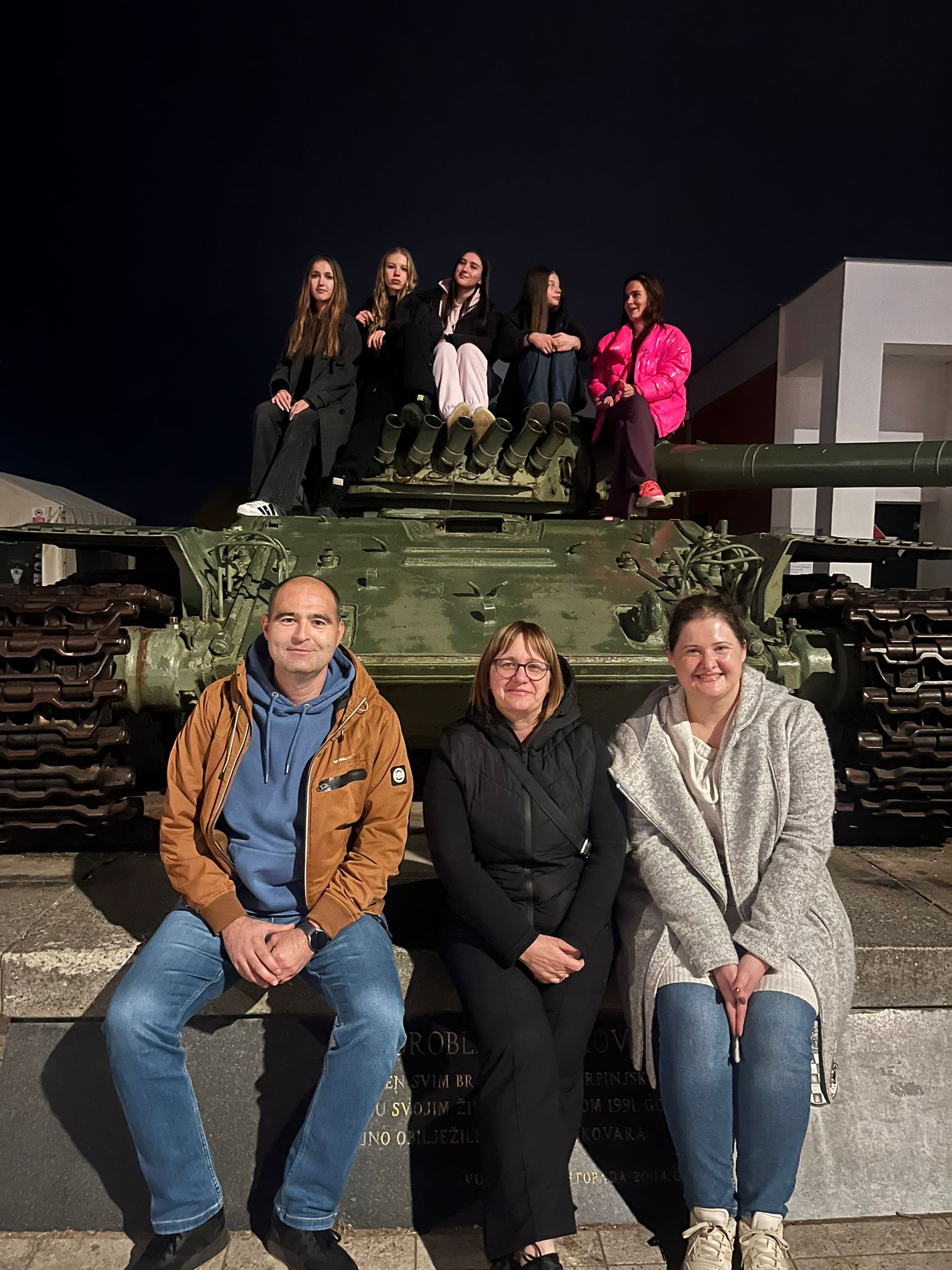 Popeli smo se i na Vukovarski vodotoranj, jedan od najpoznatijih simbola hrvatskog otpora i stradanja te se upoznali s njegovom povijesnom ulogom i obnovom. U obnovi tornja sudjelovala je i naša Škola, te smo pronašli i uklesano ime Gimnazija Sesvete među imenima donatora obnove. Pogled već u suton sa tornja najbolje prikazuje ljepotu položaja Vukovara, ali i težinu prostora koji je trebalo braniti.