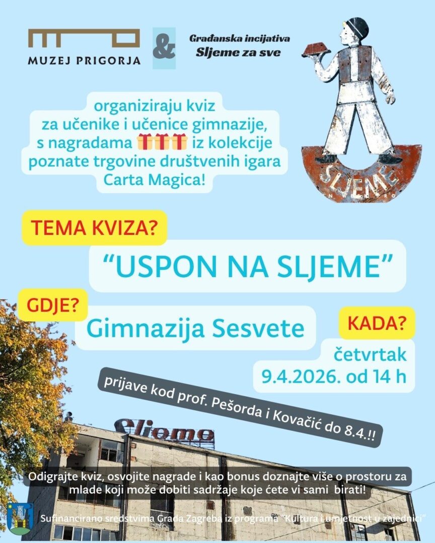 Muzej Prigorja i Građanska inicijativa Sljeme za sve organiziraju kviz za učenike i učenice Gimnazije Sesvete s nagradama iz kolekcije poznate trgovine društvenih igara.